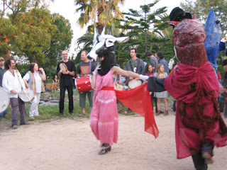 Un’allegra parata di Burattini Animali Giganti felici di danzare con il Sole e con la Terra, il padre e la madre di tutto